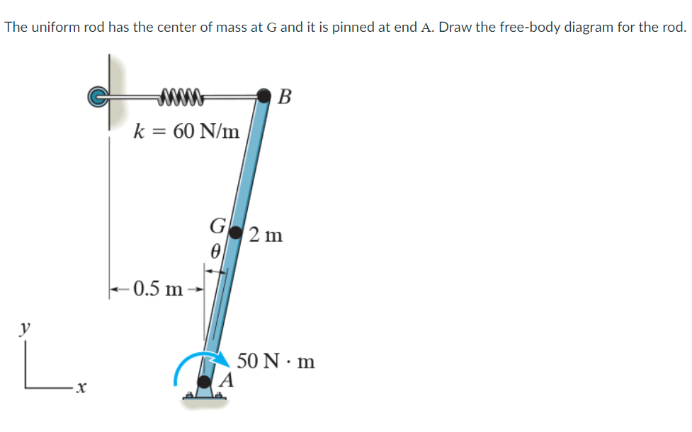 Free Body Diagrams (FBD) will be defined. Concepts will be reinforced with example problems. So the first thing that we're going to do is draw the free body diagram for this homogeneous bar.