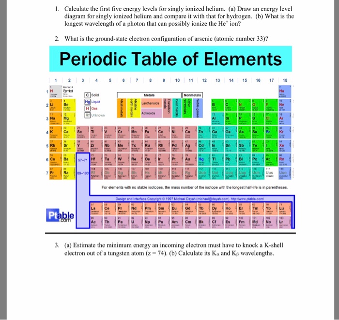 Energy level diagram for helium. Answer (1 of 3): Hydrogen has only one electron, so the only relevant force (in a classical approximation) is between the one negatively charged electron and the positively charged nucleus. In a multi-electron atom, the negatively charged electrons repel each other. We call this effect "electron... After the first energy level contains 2 electrons (helium), the next electrons go into the second energy level. After the second energy level has 8 electrons (neon), the next electrons go into the third energy level. After the third energy level has 8 electrons (argon), the next 2 electrons go into the fourth energy level. He - Ne LASER || PRINCIPLE, CONSTRUCTION, WORKING, ENERGY LEVEL DIAGRAM OF HELIUM NEON LASERABOUT THIS VIDEOA helium-neon laser or He-Ne laser, is a type of ... The ionization energy of an atom is the energy required to remove the electron completely from the atom. (transition from ground state n = 0 to infinity n = ∞ ). For hydrogen, the ionization energy = 13.6eV. When an excited electron returns to a lower level, it loses an exact amount of energy by emitting a photon.