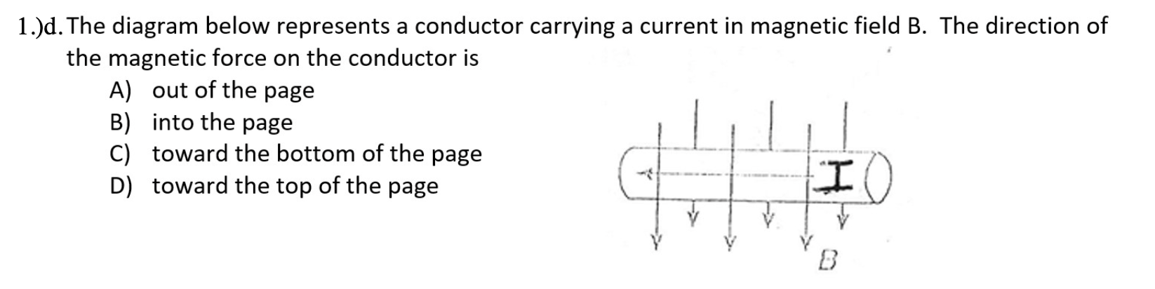 1.The diagram below represents lines of magnetic flux within a region of space. A)A B)B C)C D)D The magnetic field strength is greatest at point 2.The diagram below shows the magnetic field lines between two magnetic poles, A and B. A)Both A and B are south poles. B)A is a north pole and B is a south pole. C)A is a south pole and B is a north pole.