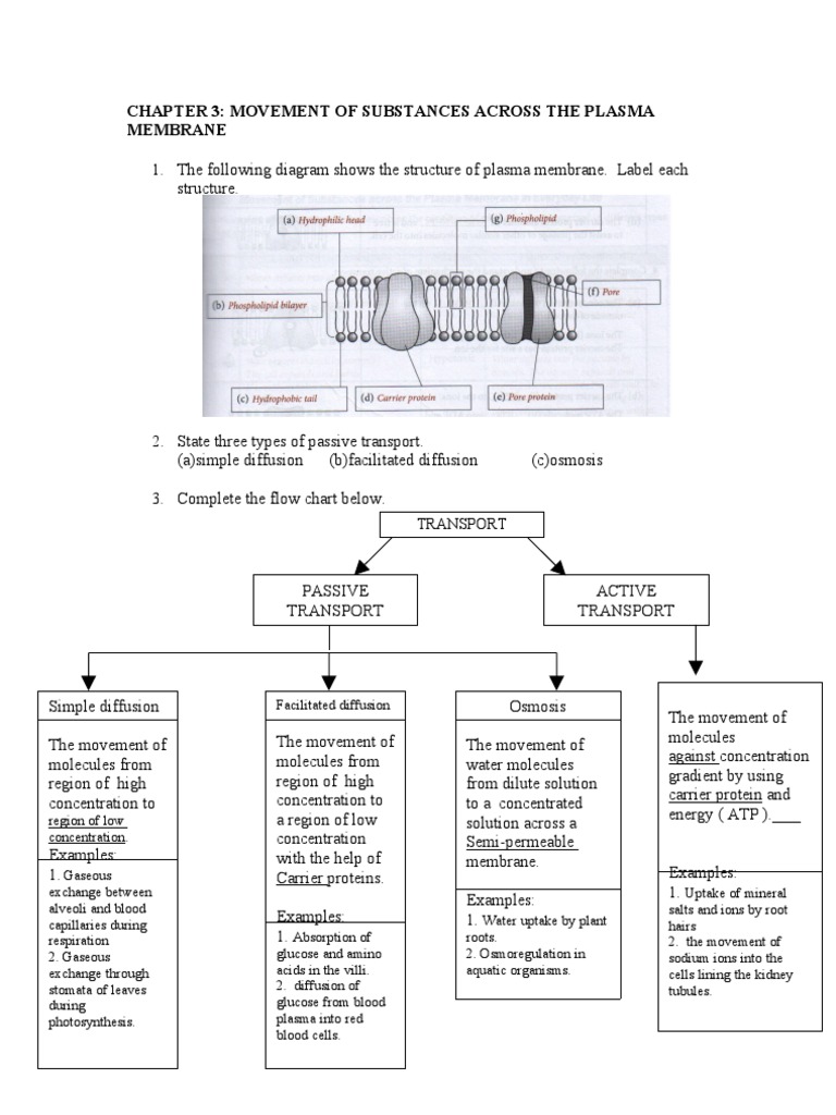 On the diagram below, add these labels: facilitated diffusion with a carrier protein, facilitated diffusion with a channel protein, simple-diffusion. For each type of transport, give an example of a material that is moved in this manner. — achvc carrier (qtutc3e 24. What is membrane potential? Which side of the membrane is positive? Membronc The diffusion of water across a selectively permeable membrane. Simple diffusion. Diffusion that doesn't involve a direct input of energy or assistance by carrier proteins. Facilitated Diffusion. Movement of specific molecules across cell membranes through protein channels ... Diagrams. Flashcards. Mobile. Help. Sign up. Help Center. Honor Code ... Drag the labels to their appropriate locations on the diagram. a. plasma membrane b. side with higher concentration of molecules c. side with lower concentration of molecules d. facilitated diffusion causes a net movement of molecules down their concentration gradient e. transport protein. A) Simple Diffusion • Small molecules pass directly through the phospholipid by-layer (e.g. CO 2, H 2O, O 2) (Figure 4.3a) Rate depends on: 1) Molecule size 2) Concentration gradient 3) Lipid solubility
