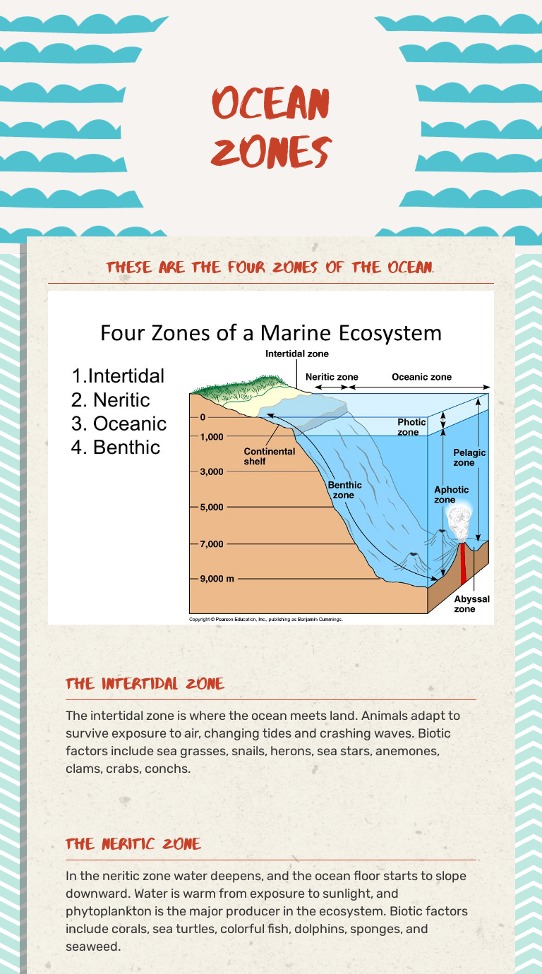 Demonstrate knowledge by drawing a scale diagram of the five ocean zones. This will be a project-based activity in which students will work together to draw ...4 pages
