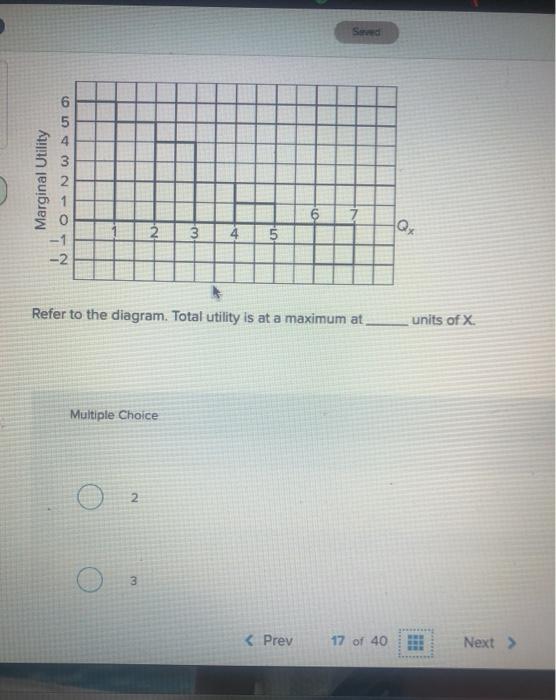 Total utility is at a maximum at _____ units of X. Ch. 7 page 3. a. 2 b. 3 c. 4 d. 6. 15. Refer to the diagram. Total utility: a. increases so long as additional units of Y are purchased. b. becomes negative at 4 units. c. increases at a diminishing rate, reaches a maximum, and then declines. d.