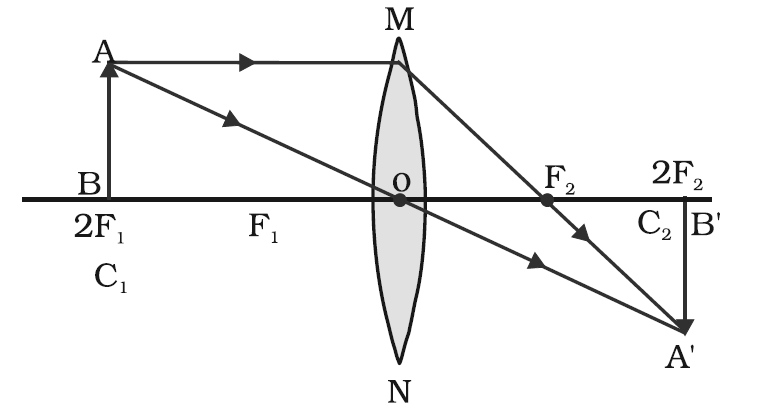 A camera or human eye Cameras and eyes contain convex lenses. Ray diagrams for double convex lenses were drawn. Where both reflected rays meet is point A. A lens is a transparent object that causes the light that passes through it to refract. A ray diagram is a tool used to determine the location size orientation and type of image formed by a lens.