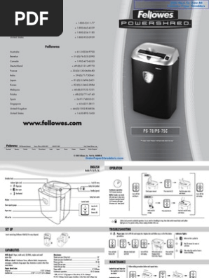 In the user manual, there are a Fellowes paper shredder parts list and diagram. ... Fellowes DM1200CT 12 Sheet Cross Cut Powershred Shredder Review.. Products 21 - 28 of 28 — Fellowes.
