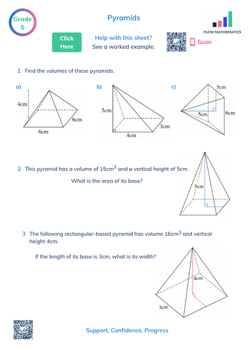 Animated demonstration of the pyramid volume calculation. Definition: The number of cubic units that will exactly fill a pyramid. Try this Drag the orange dots to adjust the base size and height of the pyramid and note how the volume changes. The model represents an equation. What is the solution for this equation? answer choices x = 3 x = 15 x = 5 x = 1 Question 9 300 seconds Q. The table shows Peter’s net worth statement. Assets are shown as positive numbers, and liabilities are shown as negative numbers. The value of Peter’s house is not given. Peter’s net worth is $101,800. The volume of a pyramid refers to the space enclosed between its faces. The volume of a pyramid whose base area is 'B' and whose height is 'h' is V = (1/3) Bh. Solved Examples on Volume of Pyramid. Example 1: Cheops pyramid in Egypt has a base measuring about 755 ft. × 755 ft. and its... Volume of a pyramid in cubic units = 1/3*base area*height. A food chain pyramid is the term of a diagram that displays a food chain, using a food pyramid format. If a Egyptian pyramid has a square base that measures 500 yards and the pyramid stands 300 yards tall what would be the volume of...