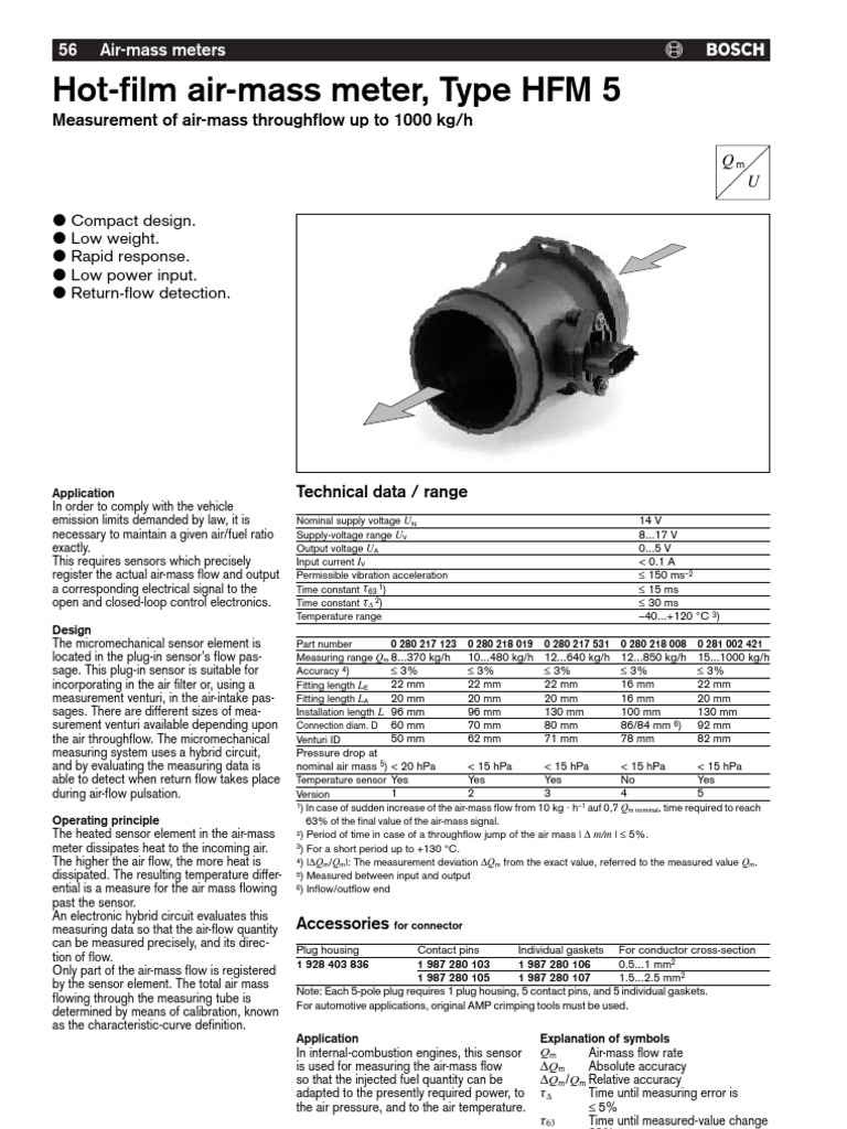 Bosch maf sensor system datasheet - Free download as PDF File (.pdf), Text File (.txt) or read online for free. This is the guide for audi MAf sensor selections ... a hot-wire air-mass meter, ... Temperature-resistance diagram of the temperature sensor.