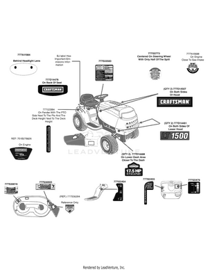 Products | CRAFTSMAN QUICK LINKS. V20 System. Craftsman Club. Storage Accessories. Tool Bags, Pouches & Belts. 1500 Lumens Cordless LED Work Light with Battery. Craftsman 247.289010 (13AN771S099) - Craftsman LT1500 Lawn... LT1500 Lawn Tractor. Hood & Dash Assembly Parts Diagram.