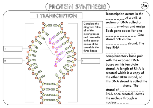 DOC Protein Synthesis Worksheet PROTEIN SYNTHESIS WORKSHEET. PART A. Read the following: Protein synthesis is the process used by the body to make proteins. The first step of protein synthesis is called Transcription. It occurs in the nucleus. During transcription, mRNA transcribes (copies) DNA. DNA is "unzipped" and the mRNA strand copies a strand of DNA.