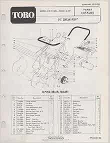 Toro Snowblower Model 38742 Parts - Repair Clinic Toro Snowblower Model 38742 Parts. Toro Snowblower Model 38742 Parts are easily labeled on this page to help you find the correct component for your repair. Filter results by category, title and symptom. You can also view diagrams and manuals, review common problems that may help answer your questions, watch related videos, read insightful articles or use our repair help guide to get started. Toro Snow Thrower Parts | Toro Snow Blower Replacement Parts Pats Small Engine Plus we have all your Toro Snow Thrower replacement parts needs at prices that will be hard to find from our competitors. Whether it's Aftermarket Toro Snowthrower Parts (see categories below) or Original Equipment Toro Snow Thrower / Snow Blower Parts by parts lookup diagrams, we have a very large inventory in our newly expanded 12,500+ square foot facility, and prices you ... Toro 38040 (1000001-1999999)(1981) Snowthrower Parts Need to fix your 38040 (1000001-1999999)(1981) Snowthrower? Use our part lists, interactive diagrams, accessories and expert repair advice to make your repairs easy. Toro Ccr 2000 Parts Diagram - schematron.org 04.11.2018. 6 Comments. on Toro Ccr 2000 Parts Diagram. schematron.org - Select Toro - Toro CCR Snowthrower (SN: Diagrams and order Genuine Toro Snow blowers & snow thrower Parts. View and Download Toro CCR operator's manual online. CCR Snow Blower pdf manual download. Here is a Toro CCR electric start Snowthrower Snowblower Parts Catalog Manual.